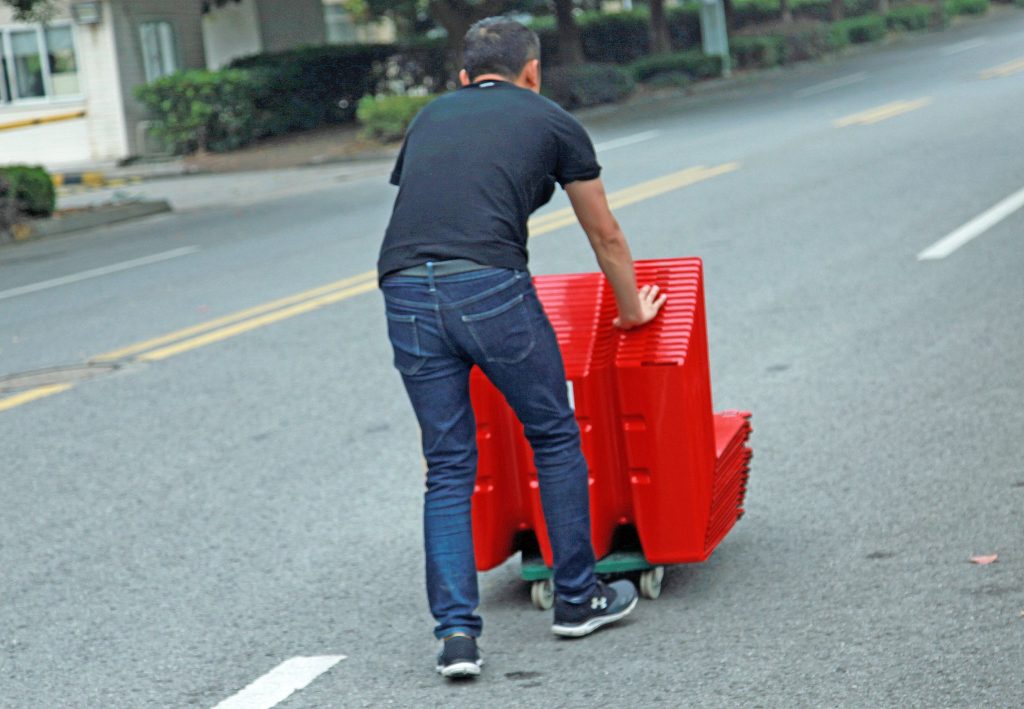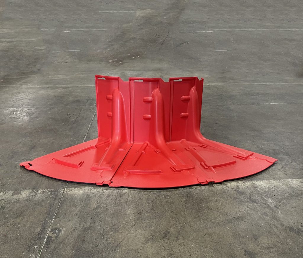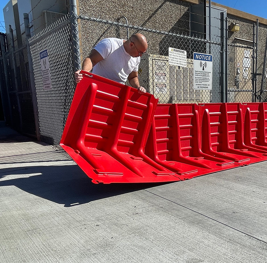 Μεταφορά στην Περιοχή Προστασίας: Τα φράγματα μπορούν να μετακινηθούν χειροκίνητα ή με τη βοήθεια εξοπλισμού, όπως καρότσι μεταφοράς, όχημα pickup ή περονοφόρο ανυψωτικό, για γρήγορη και ασφαλή μεταφορά στην επιθυμητή τοποθεσία.